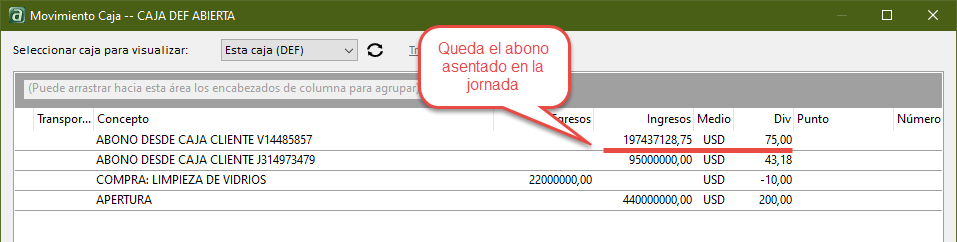 - También cabe destacar que una jornada de caja puede cerrarse únicamente si el saldo de la misma es mayor o igual a cero.