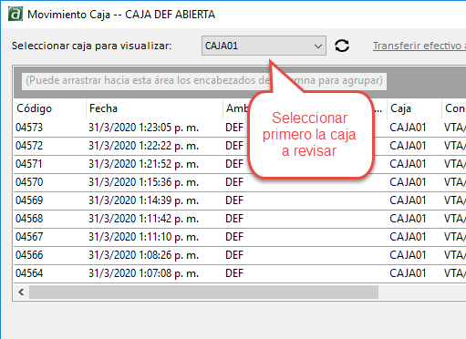 Acceso a la ventana Movimiento Caja