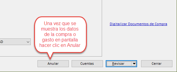 Tenga en cuenta que sólo se pueden anular compras o gastos relacionados con jornadas de caja aún abiertas.
