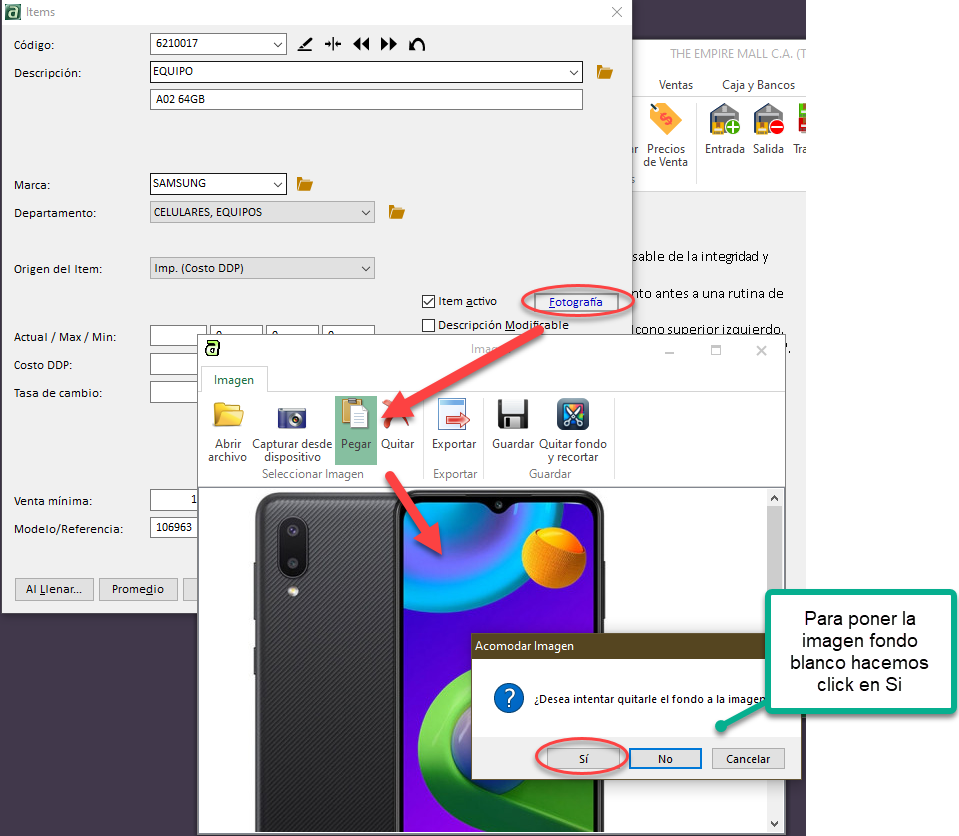 Desde la misma ficha, se puede copiar una foto del artículo en internet para colocarlo en sistema, por ejemplo desde el Buscador de Imagenes de Google