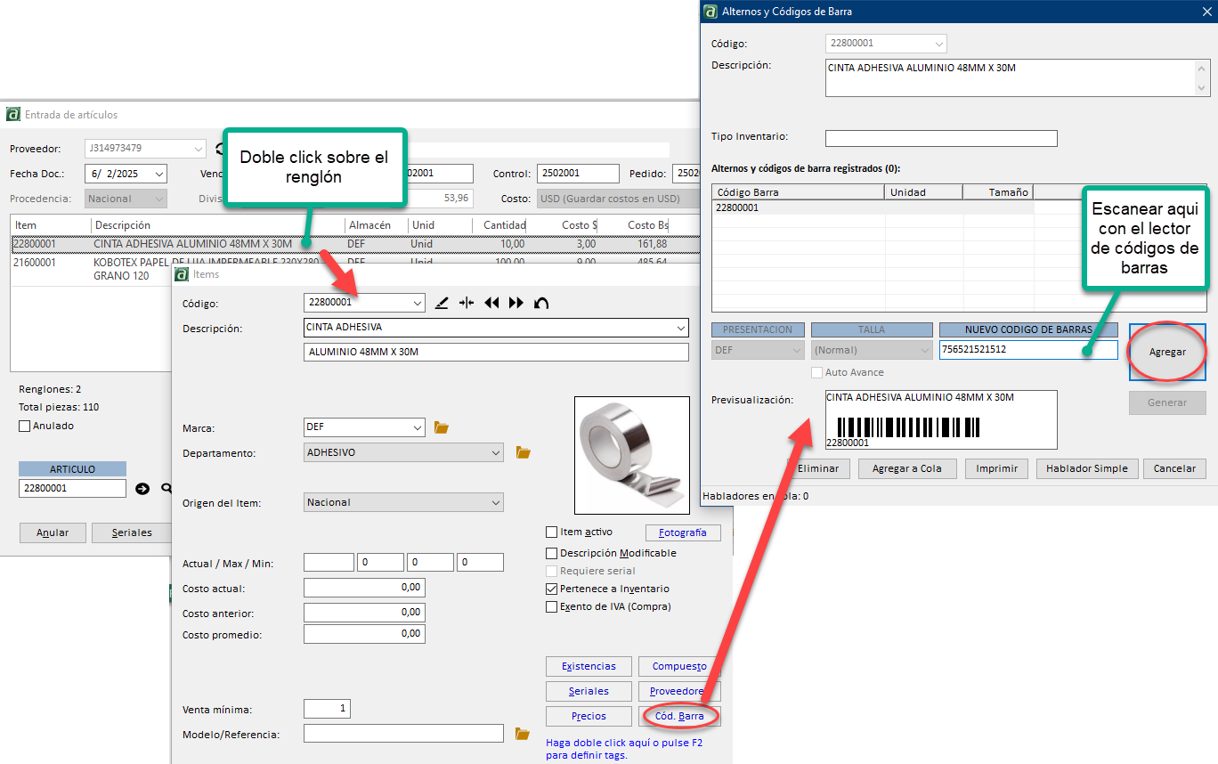 Entonces se completan los detalles del nuevo renglón y se incluye en la orden.