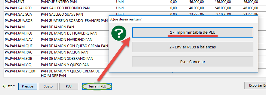 Es conveniente imprimir una hoja con una tabla de PLU actualizada para que el operador de la balanza la tenga a mano, los pasos son los siguientes: