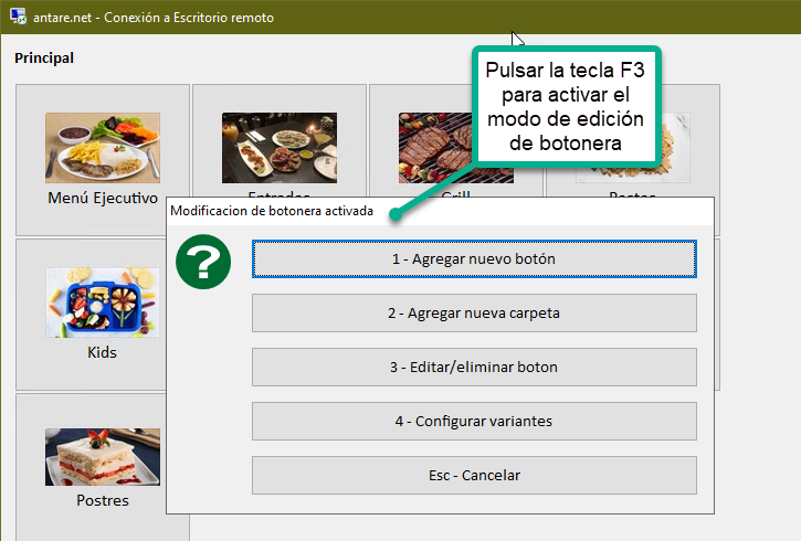 Por lo general, el usuario tipo GERENTE o superior es quien tiene acceso a los comandos de modificación de botoneras.